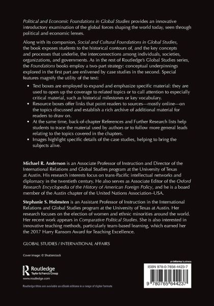 Political and Economic Foundations in Global Studies provides an innovative introductory examination of the global forces shaping the world today, seen through political and economic lenses. Along with its companion, Social and Cultural Foundations in Global Studies, the book exposes students to the historical contours of, and the key concepts and processes that underlie, the interconnections among individuals, societies, organizations, and governments. As in the rest of Routledge's Global Studies series, the Foundations books employ a two-part strategy: conceptual underpinnings explored in the first part are enlivened by case studies in the second. Special features magnify the utility of the text: ¿ Text boxes are employed to expand and emphasize specific material: they are used to open up the coverage to related topics or to call attention to especially critical material, such as historical milestones or key vocabulary. ¿ Resource boxes offer links that point readers to sources-mostly online-on the topics discussed and establish a rich archive of additional material for readers to draw on. ¿ At the same time, back-of-chapter References and Further Research lists help students to trace the material used by authors or to follow more general leads relating to the topics covered in the chapters. ¿ Images highlight specific details of the case studies, helping to bring the subjects alive.