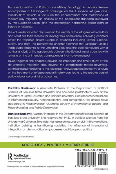 This special edition of Political and Military Sociology: An Annual Review encompasses a full range of coverage on the European refugee crisis. Contributions include a focus on the characteristics and motivations of modern-day migrants, an analysis of the inconsistent standards displayed by the European Union, and the militarization happening across parts of Europe in response. The volume leads with a discussion on the identity of the refugees: who are they and what are their reasons for leaving their homelands? Following chapters cover the response across Europe in countries including Serbia, Greece, Turkey, and Italy. The penultimate chapter examines the European Union's inadequate response to the unfolding crisis, and the book concludes with a central analysis of the agreements between the EU and transit countries with remarks on the unintended consequences that have emerged.