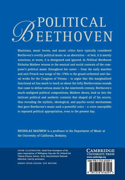 Musicians, music lovers and music critics have typically considered Beethoven's overtly political music as an aberration; at best, it is merely notorious, at worst, it is denigrated and ignored. In Political Beethoven, Nicholas Mathew returns to the musical and social contexts of the composer's political music throughout his career - from the early marches and anti-French war songs of the 1790s to the grand orchestral and choral works for the Congress of Vienna - to argue that this marginalized functional art has much to teach us about the lofty Beethovenian sounds that came to define serious music in the nineteenth century. Beethoven's much-maligned political compositions, Mathew shows, lead us into the intricate political and aesthetic contexts that shaped all of his oeuvre, thus revealing the stylistic, ideological and psycho-social mechanisms that gave Beethoven's music such a powerful voice - a voice susceptible to repeated political appropriation, even to the present day.