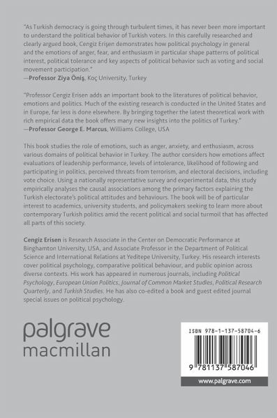 Introduction.- Chapter 1: The History of Turkish Political Behaviour.- Chapter 2: Conceptualization and Measurement of Emotion.- Chapter 3: Emotions and Political Attitudes.- Chapter 4: Emotion and Political Involvement and Participation.- Chapter 5: Emotion and Political Ads in Turkey.- Chapter 6: Emotion and Voting Behaviour.- Conclusion.
