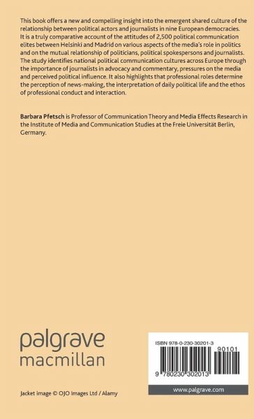 Table of Contents List of Figures List of Tables Notes on Contributors Acknowledgements 1. Blind Spots in the Analysis of the Media Politics Relationship in Europe; Barbara Pfetsch PART I 2. The Idea of Political Communication Cultures and its Empirical Desiderates; Barbara Pfetsch 3. Contexts of the Media Politics Relationship: Country Selection and Grouping; Barbara Pfetsch, Peter Maurer, Eva Mayerhöffer , Tom Moring and Stephanie Schwab Cammarano 4. Methods and Challenges of Comparative Surveys of Political Communication Elites; Peter Maurer and Miika Vähämaa 5. National or Professional? Types of Political Communication Cultures across Europe; Barbara Pfetsch, Eva Mayerhöffer and Tom Moring PART II 6. Public Opinion Polls as Input Factor of Political Communication; Eva Mayerhöffer and Aleksander Saso Slacek Brlek 7. Democratic Demands on the Media; Nicklas Håkansson and Eva Mayerhöffer 8. Politicized Media? Partisanship and Collusion in the European Context; Anders Esmark 9. Media Power in Politics; Günther Lengauer, Patrick Donges and Fritz Plasser 10. Media Logics and Changes in News Reporting; Patrick Donges, Nicklas H?kansson and Günther Lengauer 11. Public Agenda Setting between Media Logic and Political Logic; Anders Esmark and Eva Mayerhöffer 12. Political Communication Roles Inside Out; Anders Esmark and Mark Blach-Ørsten 13. Distant North - Conflictive South: Patterns of Interaction and Conflict; Stephanie Schwab Cammarano and Juan Díez Medrano 14. European Political Communication Cultures and Democracy; Tom Moring and Barbara Pfetsch References Index