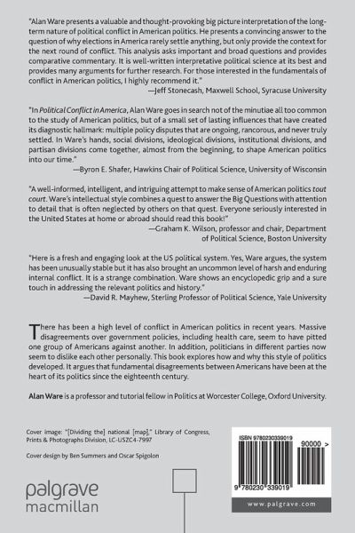 'Alan Ware presents a valuable and thought-provoking big picture interpretation of the long-term nature of political conflict in American politics. Few scholars could undertake this, but he pulls it off admirably. He is concerned with the historical sources and intensity of conflicts - the roles of region, class, religion, and ideology over time. He addresses how those conflicts are represented and perpetuated by parties and politicians as they work within decentralized American institutional arrangements. He presents a convincing answer to the question of why elections in America rarely settle anything, but only provide the context for the next round of conflict. This analysis asks important and broad questions and provides comparative commentary. It is well-written interpretative political science at its best and provides many arguments for further research. For those interested in the fundamentals of conflict in American politics, I highly recommend it.' - Jeff Stonecash, MaxwellSchool, Syracuse University