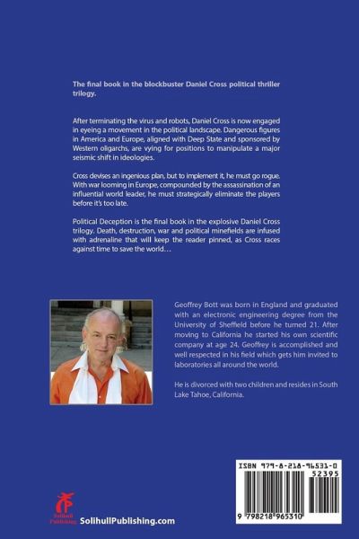The final book in the blockbuster Daniel Cross political thriller trilogy. After terminating the virus and robots, Daniel Cross is now engaged in eyeing a movement in the political landscape. Dangerous figures in America and Europe, aligned with Deep State and sponsored by Western oligarchs, are vying for positions to manipulate a major seismic shift in ideologies. Cross devises an ingenious plan, but to implement it, he must go rogue. With war looming in Europe compounded by the assassination of an influential world leader, he must systematically eliminate the players before it's too late. Political Deception is the final book in the explosive Daniel Cross trilogy. Death, destruction, war and political minefields are infused with adrenaline that will keep the reader pinned, as Cross races against time to save the world...