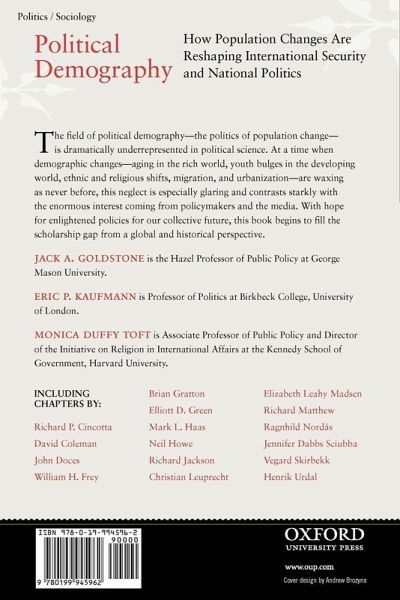 Jack A. Goldstone is the Hazel Professor of Public Policy at George Mason University and received his Ph.D. from Harvard University. He has won major prizes from the American Sociological Association and the Historical Society for his research on revolutions, population, and political conflict. His 2010 essay in Foreign Affairs, "The New Population Bomb" has received world-wide attention. A Phi Beta Kappa visiting lecturer, Goldstone has authored or edited ten books and published over one hundred articles in books and scholarly journals. His latest books are Why Europe? The Rise of the West 1500-1850 (2008) and Understanding Revolutions (forthcoming). Eric P. Kaufmann is Professor in Politics at Birkbeck College, University of London. He is the author of Shall the Religious Inherit the Earth: Demography and Politics in the Twenty-First Century (2010), The Rise and Fall of Anglo-America (2004), and three other books. He has written on religion and demography for Newsweek International, Foreign Policy, and Prospect magazines. Monica Duffy Toft is Associate Professor of Public Policy and Director of the Initiative on Religion in International Affairs at the Kennedy School of Government, Harvard University. Her current research examines the role of nationalism, religion, and rationality in relation to political violence. She is the author of The Geography of Ethnic Violence: Identity, Interests, and the Indivisibility of Territory (2003), Securing the Peace: The Durable Settlement of Civil Wars (2010), and God's Century (2011).