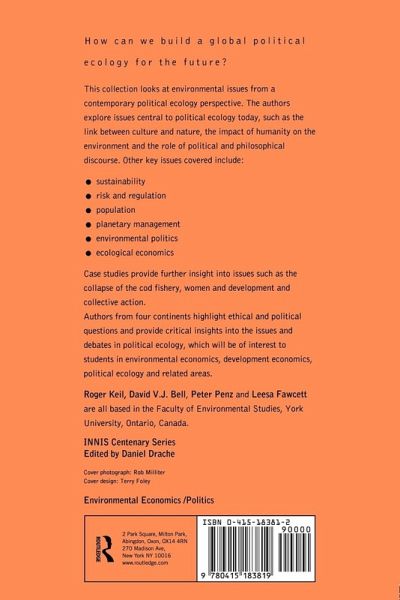 Political Ecology addresses environmental issues which Innis was concerned with, from a contemporary, political economy perspective. They explore a wide range of themes and issues including: * sustainability * risk and regulation * population growth * planetary management * impact of humanity on environment * role of technology and communication. Case studies provide further insight into issues such as industrial racism, women and development and collective action by highlighting ethical and political questions and providing critical insights into the issues and debates in political ecology.