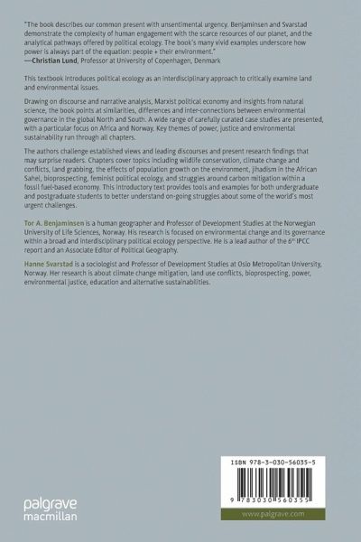 The authors challenge established views and leading discourses and present research findings that may surprise readers. Chapters cover topics including wildlife conservation, climate change and conflicts, land grabbing, the effects of population growth on the environment, jihadism in the African Sahel, bioprospecting, feminist political ecology, and struggles around carbon mitigation within a fossil fuel-based economy. This introductory text provides tools and examples for both undergraduate and postgraduate students to better understand on-going struggles about some of the world's most urgent challenges.