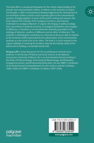 This book offers a conceptual framework for the critical understanding of the present socio-environmental conflicts. It reflects on the evolution of subject and thought, a shift in environmental thinking triggered by the development of eco-territorial conflicts and the social responses given to the environmental question. Bringing together 40 years of the authors writing and research, the book explores the transition from ecological economics and historical materialism to ecological Marxism. It unpacks the forging of political ecology from value theory in political economy, to ecological distribution and ecologies of difference; a transition to an environmental rationality grounded in the ontology of diversity, a politics of difference and an ethics of otherness. This evolution in thinking gives consistency to a theoretical discourse able to respond to the territorial conflicts generated by the radicalization of the environmental question as a key social issue of our times. The bookis a call to respond to the urgent challenge of reversing the tendency towards the entropic death of the planet and to building a sustainable world order.