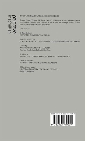 Political Economy, Power and the Body is carefully organized to provide an introductory section of three chapters which set out a number of detailed theoretical arguments relevant to the work developed in the next two sections. In this sense the collection should be a major contribution in laying the groundwork in the new area. The strength of the volume lies in the way the individual chapters bring theory and practice together. It could be argued that it represents the maturity of feminist work in international political economy now. The book will be a vital teaching as well as research text, especially in international relations/international political economy/women's studies generally.