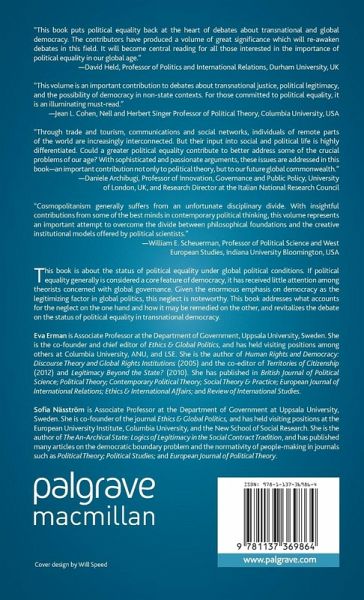 'This book puts political equality back at the heart of debates about transnational and global democracy. The contributors have produced a volume of great significance which will re-awaken debates in this field. It will become central reading for all those interested in the importance of political equality in our global age.' - David Held, Professor of Politics and International Relations, Durham University