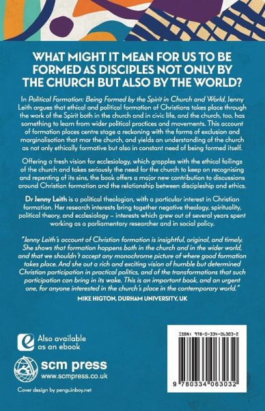 What might it mean us to be formed as disciples not only by the church but also by the world? In Political Formation: Being Formed by the Spirit in Church and World, Jenny Leith argues that ethical and political formation of Christians takes place through the work of the Spirit both in the church and in civic life, and the church, too, has something to learn from wider political practices and movements. This account of formation places centre stage a reckoning with the forms of exclusion and marginalisation that mar the church, and yields an understanding of the church as not only ethically formative but also in constant need of being formed itself. Offering a fresh vision for ecclesiology, which grapples with the ethical failings of the church and takes seriously the need for the church to keep on recognising and repenting of its sins, the book offers a major new contribution to discussions around Christian formation and the relationship between discipleship and ethics.