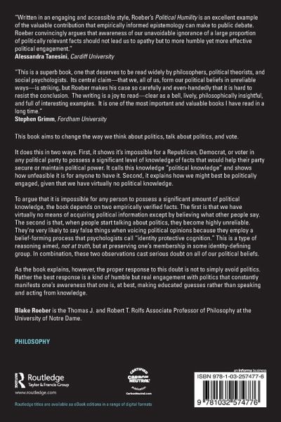 "Written in an engaging and accessible style Roeber's Political Humility is an excellent example of the valuable contribution that empirically informed epistemology can make to public debate. Roeber convincingly argues that awareness of our unavoidable ignorance of a large proportion of politically relevant facts should not lead us to apathy but to more humble yet more effective political engagement."
