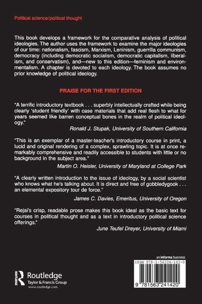 Designed for classroom use, this book develops a framework for the comparative analysis of political ideologies and examines the most prominent political ideologies of modern time. This revised edition has been enlarged to include feminism and environmentalism.