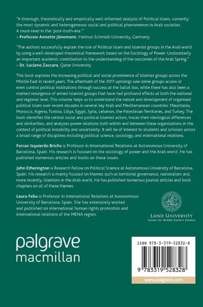 Chapter 1. From Revolution to Moderation? The Long Road of Political Islam.- Chapter 2. Lebanon and the Islamist Victory in a Multi-Faith Environment.- Chapter 3. The Battles of Political Islam in Syria.- Chapter 4. Between Pragmatism and Ideological Zeal: The Path of Palestinian Political Islam.- Chapter 5. Islamist Forces in Contemporary Egypt: The End of Conventional Dualities.- Chapter 6. Political Islam in Libya: Vanguards Before and After the War.- Chapter 7. Political Islam in Tunisia: The Changing Landscape.- Chapter 8. Algerian Islamism: Elites, Power Resources and Power Relations.- Chapter 9. Political Islam in Morocco: Islamic Principles as a Resource for Political Power.- Chapter 10. Evolution of the Islamist Groups in Mauritania.- Chapter 11. Conclusions.