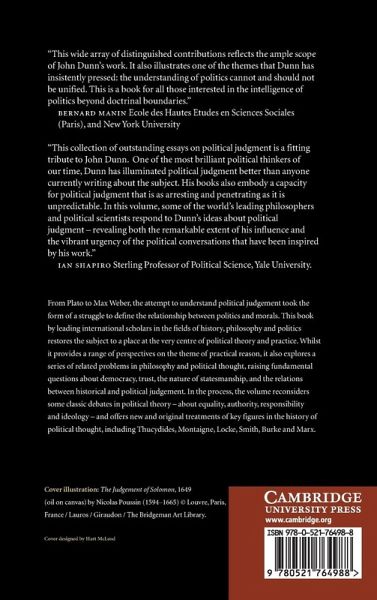 Introduction Richard Bourke and Raymond Geuss; Part I. The Character of Political Judgement: 1. What is political judgement? Raymond Geuss; 2. Sticky judgement and the role of rhetoric Victoria McGeer and Philip Pettit; 3. Theory and practice: the revolution in political judgement Richard Bourke; Part II. Trust, Judgement and Consent: 4. On trusting the judgement of our rulers Quentin Skinner; 5. Adam Smith's history of law and government as political theory Istvan Hont; 6. Marxism in translation: critical reflections on Indian radical thought Sudipta Kaviraj; Part III. Rationality and Judgement: 7. Pericles' unreason Geoffrey Hawthorn; 8. Accounting for human actions: individual agency and political judgement in Montaigne's Essais Biancamaria Fontana; 9. Nehru's judgement Sunil Khilnani; Part IV. Democracy and Modern Political Judgement: 10. Democracy, equality and redistribution Adam Przeworski; 11. Democracy and terrorism Richard Tuck; Bibliography of the works of John Dunn.