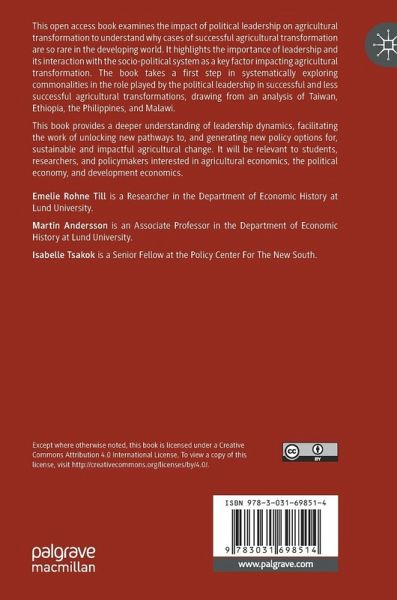 This open access book examines the impact of political leadership on agricultural transformation to understand why cases of successful agricultural transformation are so rare in the developing world. It highlights the importance of leadership and its interaction with the socio-political system as a key factor impacting agricultural transformation. The book takes a first step in systematically exploring commonalities in the role played by the political leadership in successful and less successful agricultural transformations, drawing from an analysis of Taiwan, Ethiopia, the Philippines, and Malawi.