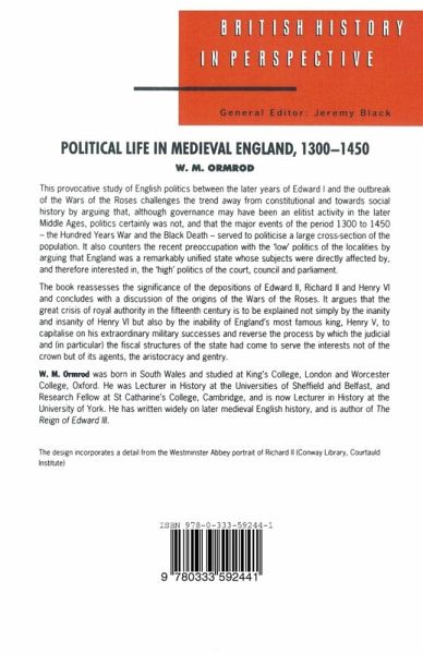 This book explores the dimensions of political society and the major preoccupations of English politics between the later years of Edward I's reign and the outbreak of the Wars of the Roses.