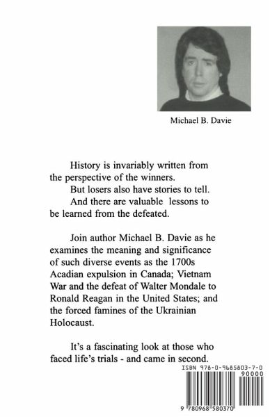 History is invariably written from the perspective of the winners. But losers also have stories to tell. And there are valuable lessons to be learned from the defeated. Join author Michael B. Davie as he examines the meaning and significance of such diverse events as the l700s Acadian expulsion in Canada; Vietnam War and the defeat of Walter Mondale to Ronald Reagan in the United States; and the forced famines of the Ukrainian Holocaust. It's a fascinating look at those who faced life's trials - and came in second.
