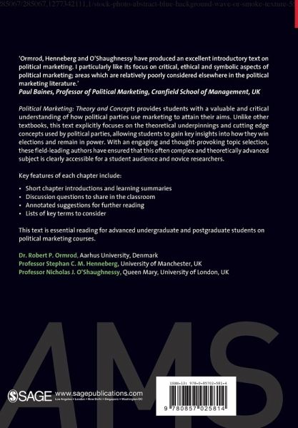 Written by authoritative figures in the field, this unique textbook provides students with an in-depth understanding of the fundamental theoretical and conceptual groundings of political marketing.