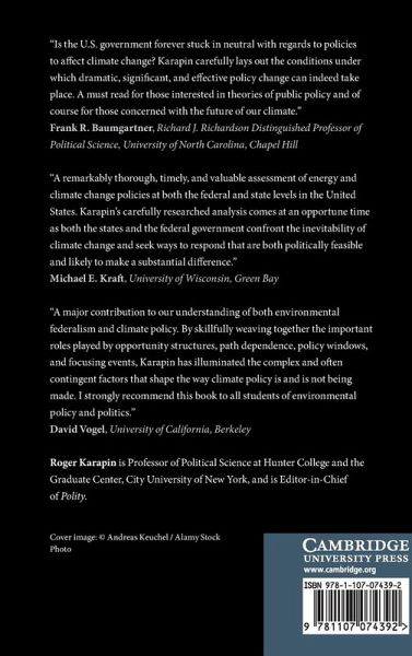 Analysis of climate change policies focuses mainly on the prospects for international agreements or how climate policies should be designed. Yet effective domestic climate policies are essential to any global solution, and we know too little about how and why such policies are adopted. Political Opportunities for Climate Policy examines in depth the causes of effective climate policies in the United States, using a statistical analysis of all fifty states and long-term case studies of California, New York, and the federal government. Roger Karapin analyzes twenty-two episodes in which policies were adopted, blocked, or reversed. He shows that actors and events have positively affected climate policy making, despite the constraints presented by political institutions and powerful fossil fuel industries. Climate policy advocates have succeeded when they mobilized vigorously and astutely during windows of opportunity - which opened when events converged to raise both problem awareness and the political commitment to address them.