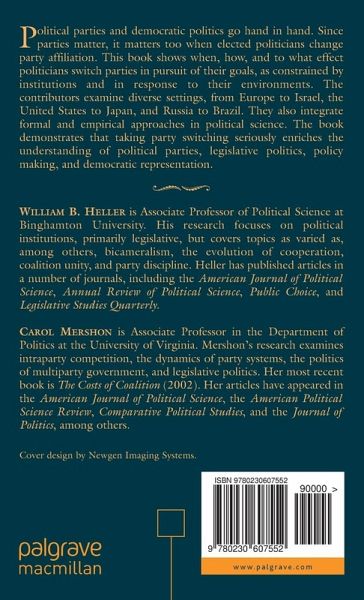 Political parties and democratic politics go hand in hand. Since parties matter, it matters too when elected politicians change party affiliation. This book shows why, when, and to what effect politicians switch parties in pursuit of their goals, as constrained by institutions and in response to their environments.