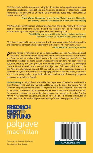 "Political Parties in Palestine presents a highly informative and comprehensive overview of ideology, leadership, organizational structures, and objectives of Palestinian political movements. This book will be of interest to professionals, academics, and students of Middle Eastern affairs." - Frank-Walter Steinmeier, former Foreign Minister and Vice Chancellor of Germany, leader of the opposition in the German Bundestag