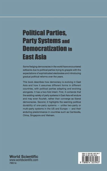 Some fledging democracies in the world have encountered setbacks due to political parties trying to grapple with the expectations of sophisticated electorates and introducing gradual political reforms over the years. This book describes how democracy is evolving in East Asia and how it assumes different forms in different countries, with political parties adapting and evolving alongside. It has a two-fold intent. First, it contends that the existing variety of party systems in East Asia will endure and may even flourish, rather than converge as liberal democracies. Second, it highlights the seeming political durability of one party systems unlike two-part or multi-party systems in the US and Europe and their enduring predominance in countries such as Cambodia, China, Singapore and Vietnam.