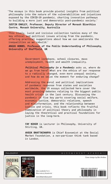 Government lockdowns, school closures, mass unemployment, health and wealth inequality. Political Philosophy in a Pandemic asks us, where do we go from here? What are the ethics of our response to a radically changed, even more unequal society, and how do we seize the moment for enduring change? Addressing the moral and political implications of pandemic response from states and societies worldwide, the 20 essays collected here cover the most pressing debates relating to the biggest public health crisis in the last century. Discussing the pandemic in five key parts covering social welfare, economic justice, democratic relations, speech and misinformation, and the relationship between justice and crisis, this book reflects the fruitful combination of political theory and philosophy in laying the theoretical and practical foundations for justice in the long-term.