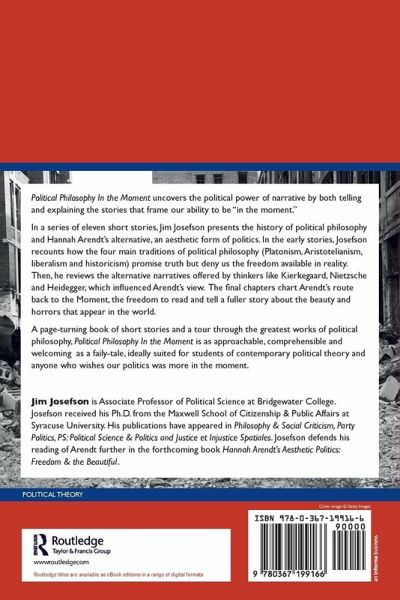 Political Philosophy In the Moment uncovers the political power of narrative by both telling and explaining the stories that frame our ability to be "in the moment." In a series of eleven short stories, Jim Josefson presents the history of political philosophy and Hannah Arendt's alternative, an aesthetic form of politics. In the early stories, Josefson recounts how the four main traditions of political philosophy (Platonism, Aristotelianism, liberalism and historicism) promise truth but deny us the freedom available in reality. Then, he reviews the alternative narratives offered by thinkers like Kierkegaard, Nietzsche and Heidegger, which influenced Arendt's view. The final chapters chart Arendt's route back to the Moment, the freedom to read and tell a fuller story about the beauty and horrors that appear in the world. A page-turning book of short stories and a tour through the greatest works of political philosophy, Political Philosophy In the Moment is as approachable, comprehensible and welcoming as a fairy-tale, ideally suited for students of contemporary political theory and anyone interested in political thought.