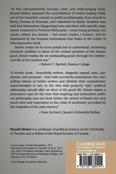 What is political philosophy? Ronald Beiner makes the case that it is centrally defined by supremely ambitious reflection on the ends of life. We pursue this reflection by exposing ourselves to, and participating in, a perennial dialogue among epic theorists who articulate grand visions of what constitutes the authentic good for human beings. Who are these epic theorists, and what are their strengths and weaknesses? Beiner selects a dozen leading candidates: Arendt, Oakeshott, Strauss, Löwith, Voegelin, Weil, Gadamer, Habermas, Foucault, MacIntyre, Rawls, and Rorty. In each case, he shows both why the political philosophies continue to be intellectually compelling and why they are problematic or can be challenged in various ways. In this sense, Political Philosophy attempts to draw up a balance sheet for political philosophy in the twentieth century, by identifying a canon of towering contributions and reviewing the extent to which they fulfil their intellectual aspirations.