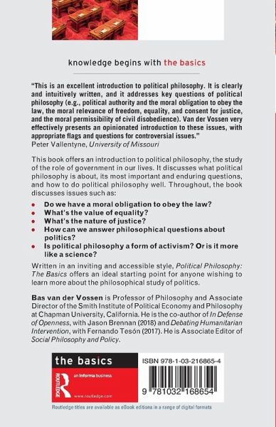 "This is an excellent introduction to political philosophy. It is clearly and intuitively written, and it addresses key questions of political philosophy (e.g., political authority and the moral obligation to obey the law, the moral relevance of freedom, equality, and consent for justice, and the moral permissibility of civil disobedience). Van der Vossen very effectively presents an opinionated introduction to these issues, with appropriate flags and questions for controversial issues." - Peter Vallentyne, University of Missouri