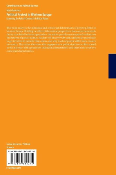 This book analyzes the individual and contextual determinants of protest politics in Western Europe. Building on different theoretical perspectives, from social movements theory to political behavior approaches, the author provides new empirical evidence on the patterns of protest politics. Readers will discover why some citizens are more likely to get involved in protests than others, and why levels of protest differ from country to country. The author illustrates that engagement in political protest is often rooted in the interplay of the protester's individual characteristics and their home country's contextual characteristics.