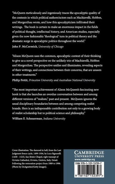 From climate change to nuclear war to the rise of demagogic populists, our world is shaped by doomsday expectations. In this path-breaking book, Alison McQueen shows why three of history's greatest political realists feared apocalyptic politics. Niccolò Machiavelli in the midst of Italy's vicious power struggles, Thomas Hobbes during England's bloody civil war, and Hans Morgenthau at the dawn of the thermonuclear age all saw the temptation to prophesy the end of days. Each engaged in subtle and surprising strategies to oppose apocalypticism, from using its own rhetoric to neutralize its worst effects to insisting on a clear-eyed, tragic acceptance of the human condition. Scholarly yet accessible, this book is at once an ambitious contribution to the history of political thought and a work that speaks to our times.