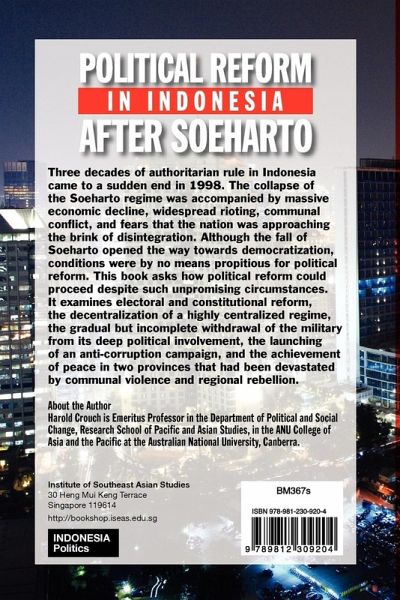 Three decades of authoritarian rule in Indonesia came to a sudden end in 1998. The collapse of the Soeharto regime was accompanied by massive economic decline, widespread rioting, communal conflict, and fears that the nation was approaching the brink of disintegration. Although the fall of Soeharto opened the way towards democratization, conditions were by no means propitious for political reform. This book asks how political reform could proceed despite such unpromising circumstances. It examines electoral and constitutional reform, the decentralization of a highly centralized regime, the gradual but incomplete withdrawal of the military from its deep political involvement, the launching of an anti-corruption campaign, and the achievement of peace in two provinces that had been devastated by communal violence and regional rebellion.