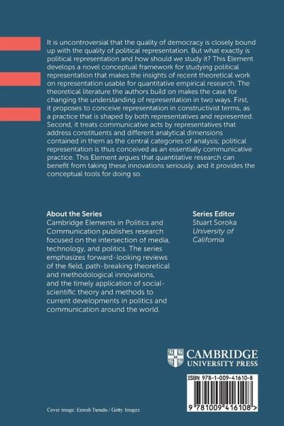 This Element develops a novel conceptual framework for studying political representation that makes the insights of theoretical work on representation usable for quantitative empirical research. It argues that quantitative research can benefit immensely from taking the innovations seriously, and it provides the conceptual tools for doing so.