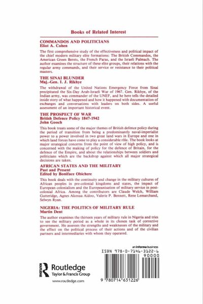This book represents three decades of Perlmutter's experiences and observations. The author studies the relationship between the military and politics in Middle East, focusing mainly on Egypt as a case study. He concludes by analysing the effect this internal relationship has on military performance.