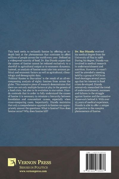 This book seeks to reclassify famine by offering an in-depth look at the phenomenon that continues to affect millions of people across the world every year. Defined as a widespread scarcity of food, Dr. Bas Dianda argues that the causes of famine cannot be reduced exclusively to a shortfall in agricultural output or to economic dynamics. Instead, an analysis of famine must take into account political and economic factors as well as agricultural, climatologic and demographic data. 'Political Routes to Starvation' is the result of an all-encompassing analysis of eighty famines from across the globe. This extensive piece of research demonstrates that there are not only multiple factors at play in the genesis of a food crisis, but also in its evolution to starvation. Dianda contends that in order to fully understand the causes of famine it is necessary to reinstate a hierarchy between foundation and concomitant causes, especially when cross-comparing cases. Importantly, Dianda maintains that only a comprehensive approach to famine can appropriately answer the questions: What is famine? How does famine occur? Why does famine kill?