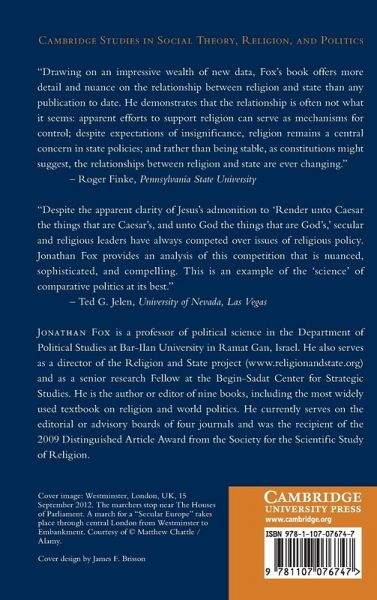 This book examines 111 types of state religion policy in 177 countries between 1990 and 2008. Jonathan Fox argues that policy is largely a result of the competition between political secular actors and religious actors, both of which try to influence state religion policy. While there are other factors that influence state religion policy and both the secular and religious camps are divided, Fox offers that the secular-religious competition perspective provides critical insight into the nature of religious politics across the globe. While many states have both increased and decreased their involvement in religion, Fox demonstrates that states which have become more involved in religion are far more common.