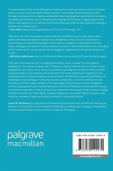 This book offers resources for re-imagining the biblical vision of water for a time quickly emerging as "the century of water wars." It takes its urgency from the author's 5-year activist engagement with a grass-roots-led social movement, pushing back on Detroit water shutoffs as global climate crises intensify. Concerned with both white supremacist "biopolitics" and continuing settler colonial reliance on the Doctrine of Christian Discovery, and beholden to an interreligious methodology of "crossing over and coming back," the text creatively re-reads the biblical tradition under tutelage to the mythologies and practices of various indigenous cultures (Algonquian/Huron, Haitian/Vodouisant, and Celtic/Norman) whose embrace of water is animate and spiritual as well as political and communal. Not enough, today, merely to engage the political battle over water rights, however; indigenous wisdom and biblical prophecy alike insist that recovery of water spirituality is central to a sustainable future.