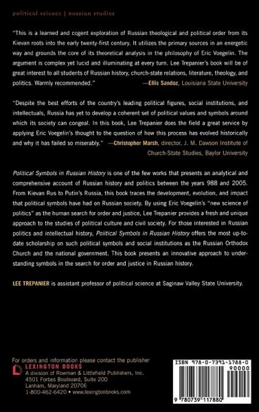 Political Symbols in Russian History is one of the few works that presents an analytical and comprehensive account of Russian history and politics between the years of 988 to 2005. From Kievan Rus to Putin's Russia, this book traces the development, evolution, and impact that political symbols have had on Russian society. By using Eric Vogelin's "new science of politics" as the human search for order and justice, Dr. Lee Trepanier provides a fresh and unique approach to the studies of political culture and civil society. For those interested in Russian politics and intellectual history, Political Symbols offers the most up-to-date scholarship on such political symbols and social institutions like the Russian Orthodox Church and State. This book presents an innovative approach to understanding symbols in the search for order and justice in Russian history.