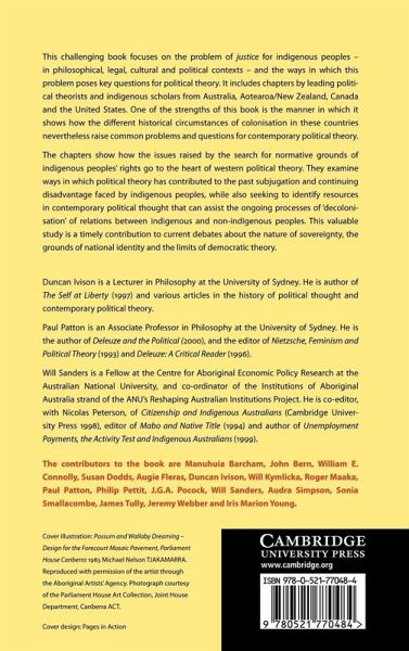 This 2001 book focuses on the problem of justice for indigenous peoples and the ways in which this poses key questions for political theory: the nature of sovereignty, the grounds of national identity and the limits of democratic theory. It includes chapters by leading political theorists and indigenous scholars from Australia, Aotearoa/New Zealand, Canada and the United States. One of the strengths of this book is the manner in which it shows how the different historical circumstances of colonization in these countries nevertheless raise common problems and questions for political theory. It examines ways in which political theory has contributed to the past subjugation and continuing disadvantage faced by indigenous peoples, while also seeking to identify resources in contemporary political thought that can assist the 'decolonisation' of relations between indigenous and non-indigenous peoples.