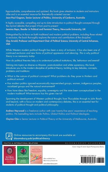 While Western modern political thought has been a story of inclusion, it has also been one of continued exclusion and new forms of political oppression and silencing. This is why political theory is so necessary today. Political thought is diverse. From liberal theories laying out ideal democratic institutions, to critical analyses of postcolonial settler states, to conceptual analyses of the nature of freedom, there are very different approaches, topics and aims within the tradition of Western political theory. What binds these diverse forms of thinking together? How do how do they help us to understand political institutions, life, behaviour and events? How do they help us to make decisions in the complex world of politics? This book, significantly revised and reconceptualized, introduces you to the modern discipline of political theory in the Western tradition, tackling its key debates, concepts, problems and traditions: - What is the nature of political concepts? What problems do they pose to thinkers and political actors? - How have modern political thinkers usually approached thinking about politics? How has this been problematized in contemporary debates? - Has modern politics fundamentally ignored economically impoverished groups, women, indigenous peoples, racialized groups and the natural environment? - How have ideas like freedom, equality, sovereignty and the state been conceptualized in the modern tradition? What tensions has this given rise to? Delving into topics as diverse as Maoism, postcolonialism and white supremacy, boxed features give you room to explore and expand in political theorising: -Focusing on the texts: helps you deal with difficult texts and arguments -Tradition: introduces you to major approaches to political theory -Thinker: allows you to understand the contributions of major figures in political thought -Thinking globally: gives insight into how political theory is adapting to global interconnectedness -Beyond the West: makes you reflect on what can be learnt from non-Western approaches. Spanning the development of Western political thought, from Thucydides through to John Rawls and beyond, with a focus on Modern and contemporary debates, this is an essential text for undergraduate and postgraduate courses on political thought and political philosophy.