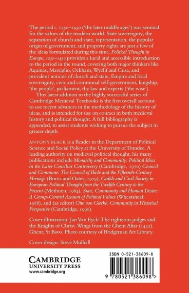 Political Thought in Europe, 1250-1450 provides a lucid and accessible introduction to the period in the round, covering both major thinkers like Aquinas, Marsiglio, Ockham, Wyclif and Cusa, and prevalent notions of church and state, Empire and local sovereignty, civic and communal self-government, kingship, 'the people', parliament, the law and the experts ('the wise'). A full bibliography is appended, to assist students wishing to pursue the subject in greater depth.