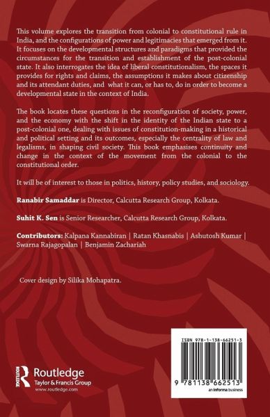 This volume explores the transition from colonial to constitutional rule in India, and the various configurations of power and legitimacies that emerged from it. It focuses on the developmental structures and paradigms that provided the circumstances for this transition, and the establishment of the post-colonial state. Different articles interrogate the idea of liberal constitutionalism, the spaces it provides for rights and claims, the assumptions it makes about citizenship and its attendant duties, and the assumptions it further makes about what it can, or has to, become in the particular situation of India. The book locates these questions in the reconfiguration of society, power, and the economy since the shift in the identity of the state after Independence, and deals with issues of constitution-making in a historical and political setting and its outcomes, especially the centrality of law and legalisms, in shaping civil society. With a companion volume on the transition to a constitutional form of governance and the consequent moulding of the citizens, this book emphasises continuity and change in the context of the movement from the colonial to the constitutional order. It will be of interest to those in politics, history, South Asian studies, policy studies, and sociology.