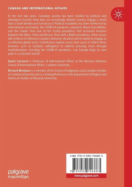 In the last two years, Canadian society has been marked by political and ideological turmoil. How does an increasingly divided country engage a world that is itself divided and tumultuous? Political instability has been reinforced by international uncertainty: the COVID-19 pandemic, populism, Black Lives Matter, and the chaotic final year of the Trump presidency that increased tensions between the West, China and Russia. Even with a Biden presidency, these issues will continue to influence Canada's domestic situation and its ability to engage as an effective global actor. Contributors explore issues that cause or reflect these tensions, such as Canada's willingness to address pressing crises through multilateralism, including the COVID-19 pandemic. Can Canada forge its own path in a turbulent world?