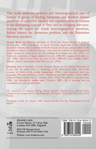 This work addresses political and historiographical uses of history. A group of leading historians and thinkers discuss questions of collective identity and representation in relation to the fluctuating concept of "Past" and its changing relevance. Among the topics are Greek historiographical questions, Balkan history, the Armenian problem, and the Plaestine historical narrative.