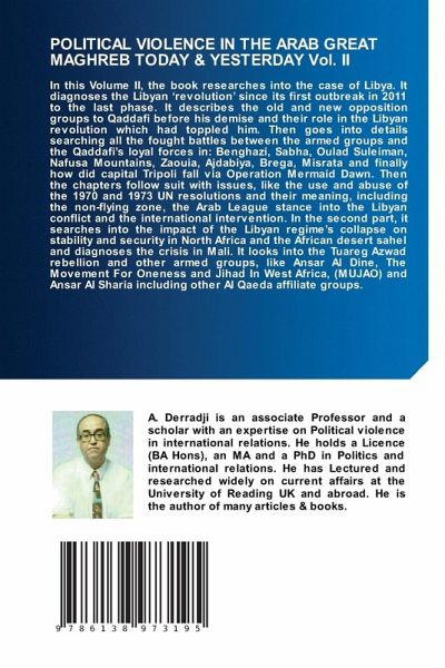 In this Volume II, the book researches into the case of Libya. It diagnoses the Libyan 'revolution' since its first outbreak in 2011 to the last phase. It describes the old and new opposition groups to Qaddafi before his demise and their role in the Libyan revolution which had toppled him. Then goes into details searching all the fought battles between the armed groups and the Qaddafi's loyal forces in: Benghazi, Sabha, Oulad Suleiman, Nafusa Mountains, Zaouia, Ajdabiya, Brega, Misrata and finally how did capital Tripoli fall via Operation Mermaid Dawn. Then the chapters follow suit with issues, like the use and abuse of the 1970 and 1973 UN resolutions and their meaning, including the non-flying zone, the Arab League stance into the Libyan conflict and the international intervention. In the second part, it searches into the impact of the Libyan regime's collapse on stability and security in North Africa and the African desert sahel and diagnoses the crisis in Mali. It looks intothe Tuareg Azwad rebellion and other armed groups, like Ansar Al Dine, The Movement For Oneness and Jihad In West Africa, (MUJAO) and Ansar Al Sharia including other Al Qaeda affiliate groups.