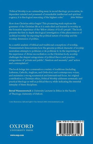 Wannenwetsch shows how worship challenges the deepest antagonisms in political thought and social practice through careful analysis of biblical and traditional conceptions of worship. Particular worship practices (confession, preaching, praising, intercession, observance of holy days) are examined for their ethical and political significance.