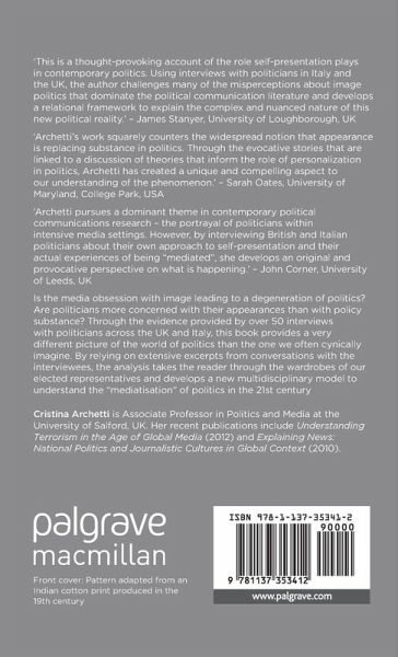 "This is an important and thought-provoking account of the role personal image and self-presentation play in contemporary politics. Using interviews with politicians in Italy and the UK the author challenges many of the misperceptions about image politics that dominate the political communication literature and develops an innovative relational framework to explain the complex and nuanced nature of this new political reality. This erudite and insightful text should be required reading for all those interested in the latest developments in mediated political communication." - James Stanyer, University of Loughborough, UK