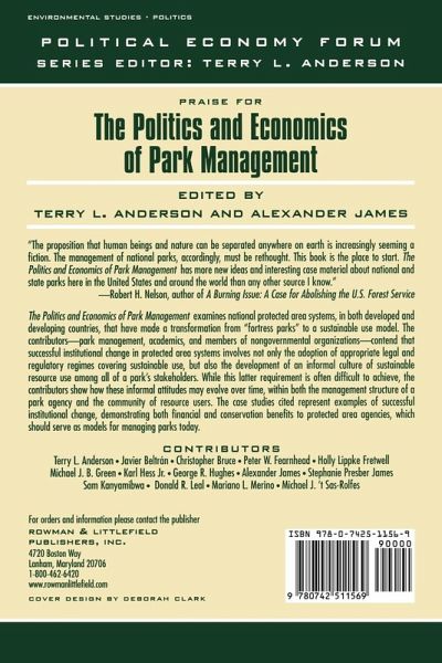 The Politics and Economics of Park Management examines national protected area systems, in both developed and developing countries, that have made a transformation from 'fortress parks' to a sustainable use model. The contributors-park management, academics, and members of nongovenmental organizations-contend that successful institutional change in protected area systems involves not only the adoption of appropriate legal and regulatory regimes covering sustainable use, but also the development of an informal culture of sustainable resource use among all of a park's stakeholders. While this latter requirement is often difficult to achieve, the contributors show how these informal attitudes may evolve over time, both within the management structure of a park agency and the community of resource users. The case studies cited represent examples of successful institutional change, demonstrating both financial and conservation benefits to protected area agencies, that should serve as model for managing parks today.
