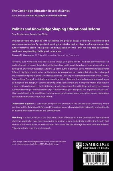 Have you ever wondered why education is always being reformed? This book provides ten case studies from all corners of the globe that illustrate how politics and data clash as education policies are developed, enacted, and assessed. A follow-up to the authors' previous book, Implementing Educational Reform, it highlights trends such as politicisation, showing where successful policies have been dropped, and where failed policies persist for ideological ends. Drawing on examples from South Africa, Ghana, Rwanda, Peru, Portugal, post-Soviet states and the UK, it shows how education policy can be disruptive and abrupt, or consensual and gradual. It challenges the managerial model of education reform that has dominated the last thirty years of education reform thinking, ultimately deepening our understanding of the importance of practical knowledge in designing and implementing policies. It is essential reading for practitioners, policy makers, and researchers of education research, education policy, and international education reform.